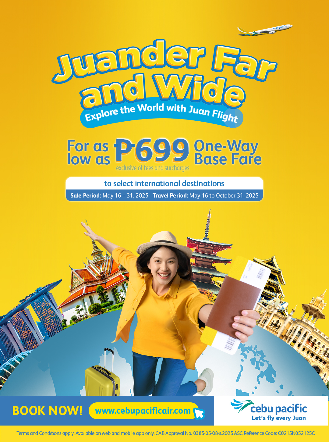 This seat sale supports CEB’s ongoing “Juander Far and Wide” campaign, encouraging Filipinos to discover the world, one affordable flight at a time.