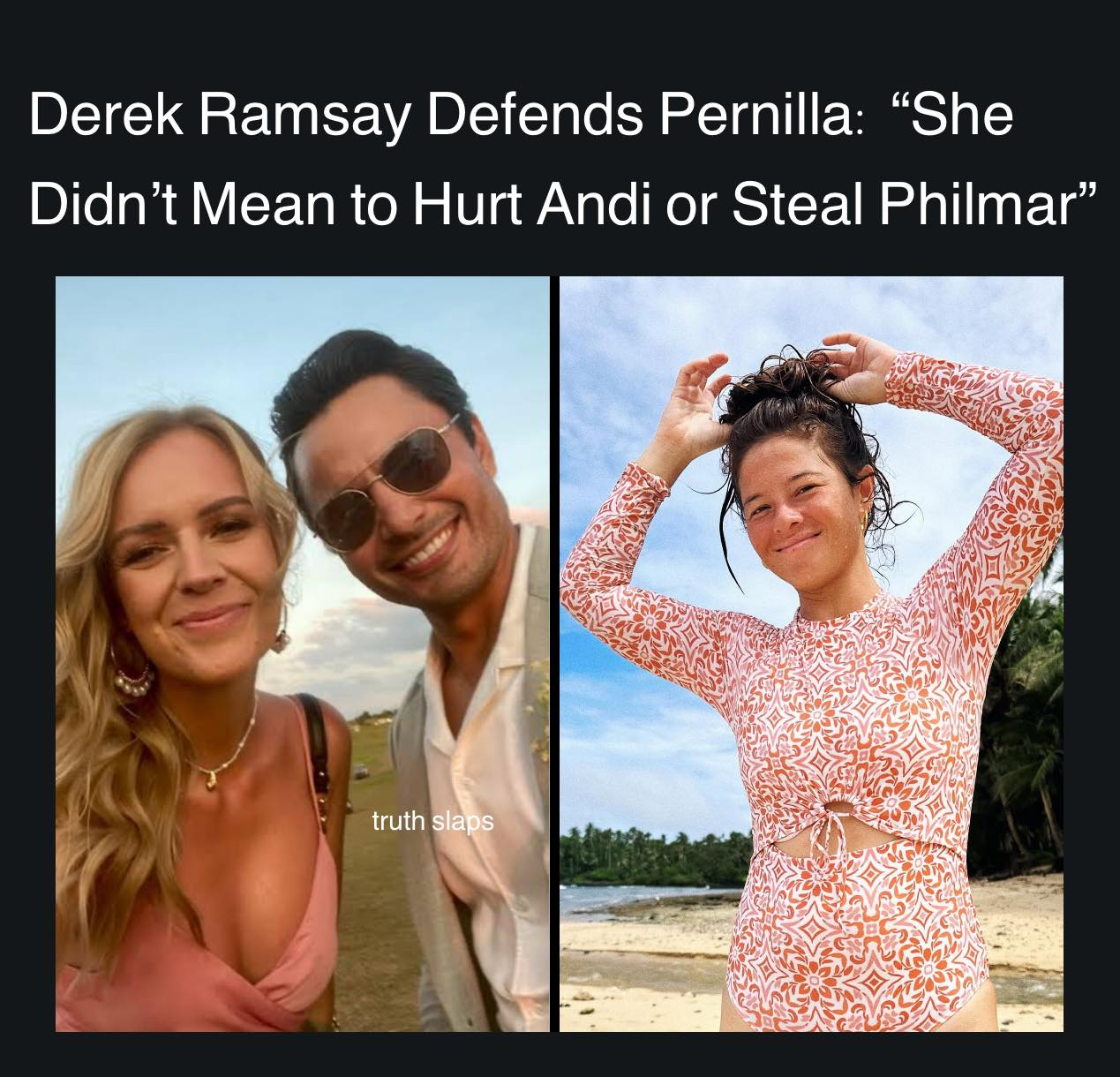While Andi and Philmar have reportedly patched things up, the controversy surrounding Pernilla remains unresolved, with netizens continuing to bash her online. Despite the criticism, Derek stood by his words and maintained that the issue should have been handled privately.