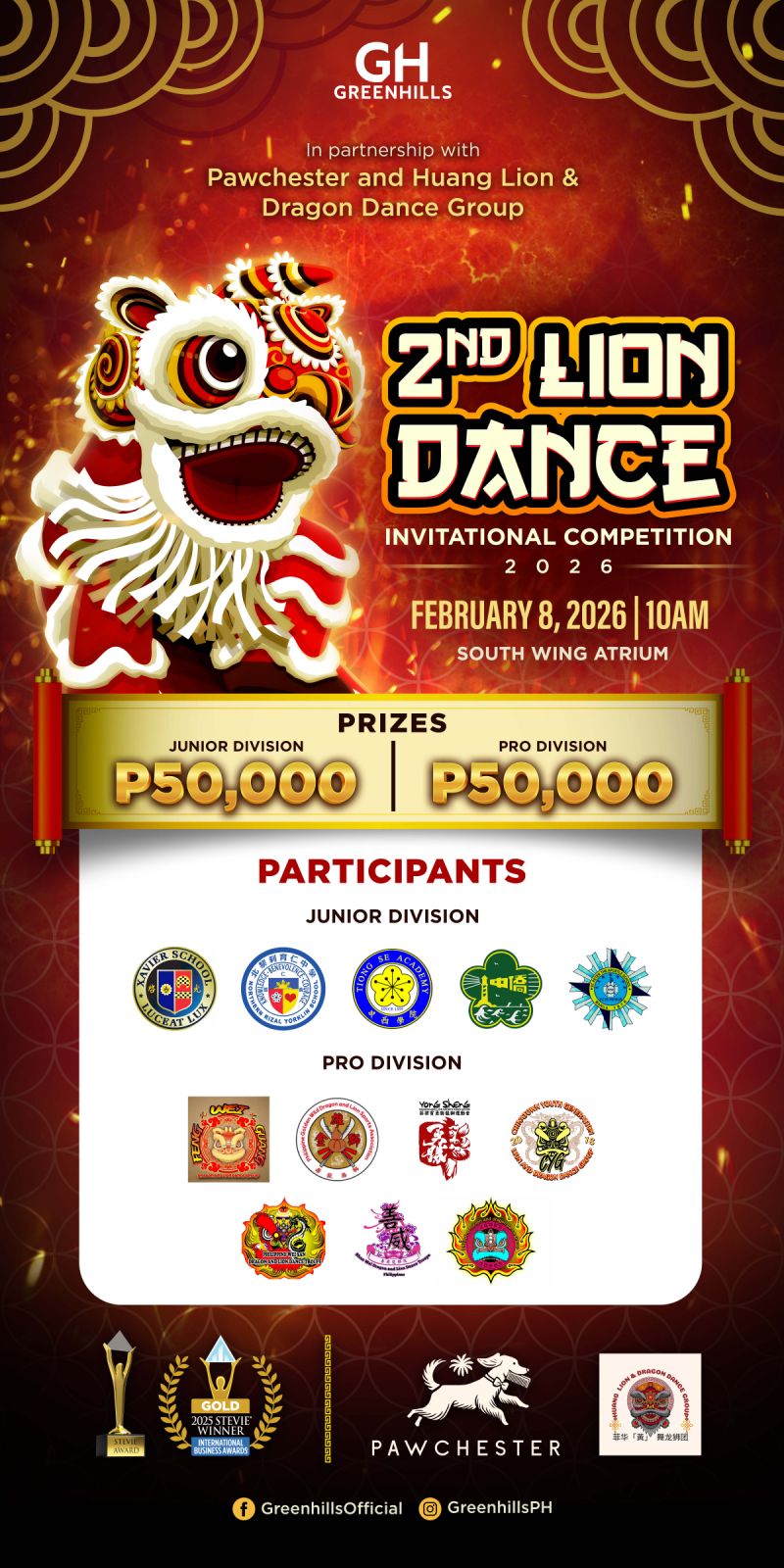 Happening on February 8, 2026, the competition returns bigger and bolder after earning Gold Winner recognition at the IBA Stevies 2025—an achievement that underscores its standing as one of the most prestigious lion dance events in the country. This year’s edition brings together some of the nation’s finest troupes in a celebration that fuses athleticism, artistry, and deep cultural heritage.
