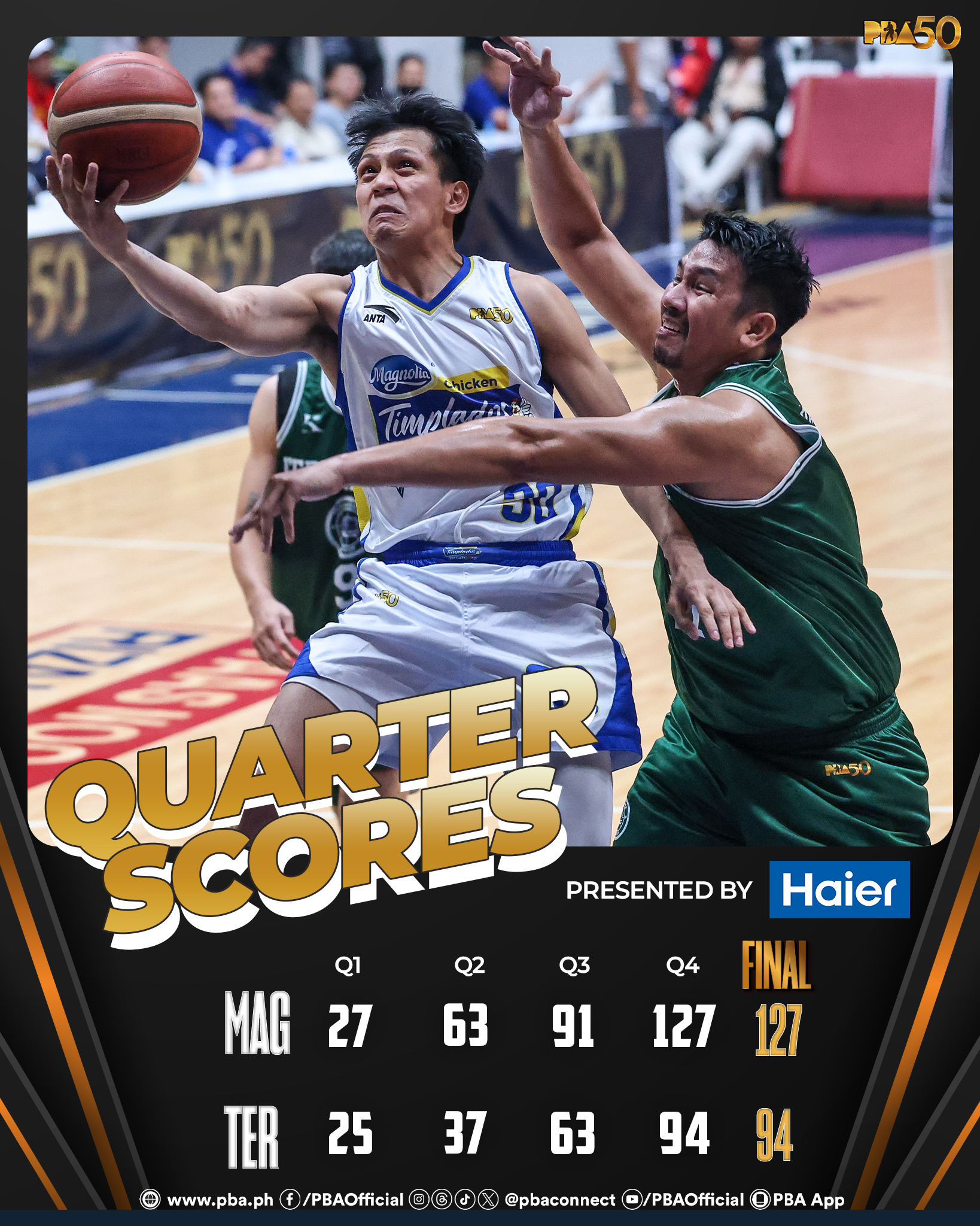 “Yes, we’re happy we have a good start compared to the last two conferences. But we’re still far from our goal and we just need to keep working hard every time we prepare for a game,” added Victolero.