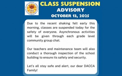 Announcements on online platforms came from Sibulan, Tanjay City, Manjuyod, Pamplona, and Bindoy. In Dumaguete City, Negros Oriental High School, St. Paul University, and Dumaguete Agape Chinese Christian Academy (DACCA) also canceled classes. They cited the need to inspect buildings and classrooms for structural integrity following a series of earthquakes affecting the province.