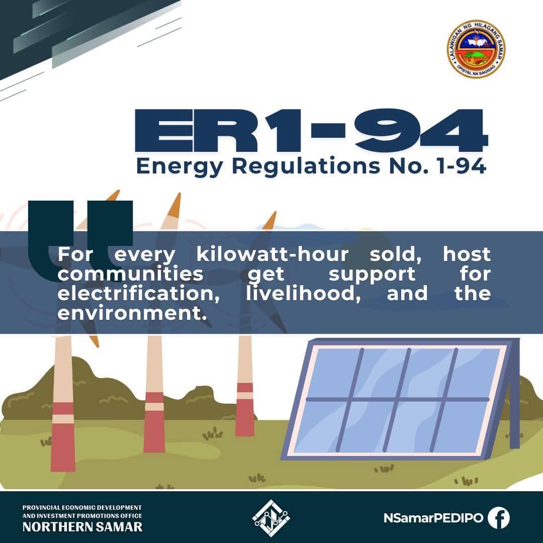 CATARMAN, Northern Samar — In support of Energy Regulations No. 1-94 (ER 194), the provincial government of Northern Samar is facilitating seven renewable energy projects to ensure that host communities of power plants and energy projects receive a share of the financial benefits.