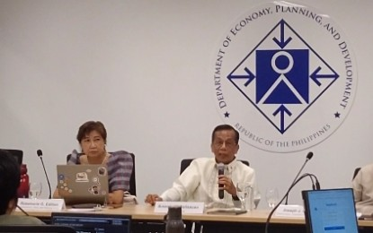 Department of Economy, Planning, and Development Undersecretary Rosemarie Edillon (left) and Secretary Arsenio Balisacan during the agency’s year-end briefing in Mandaluyong City on Monday (Dec. 1, 2025). Balisacan said a 5-percent full year growth is still respectable for the Philippine economy this year, even if this is below the full year target of between 5.5 percent to 6.5 percent target, adding this growth level remains robust compared to other countries in the region. (PNA photo by Joann Villanueva)