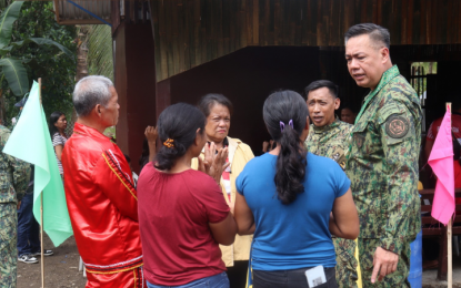 Brig. Gen. Christopher Abrahano (right), PRO-13 director, and leaders of the 4Ps Farmers Sustainable Association in Bayugan City, Agusan del Sur discuss the storage and sorting facility donated by the police. The project, turned over on Feb. 18, 2025, is part of the Revitalized Pulis sa Barangay program of the regional police. (Photo courtesy of PRO-13)