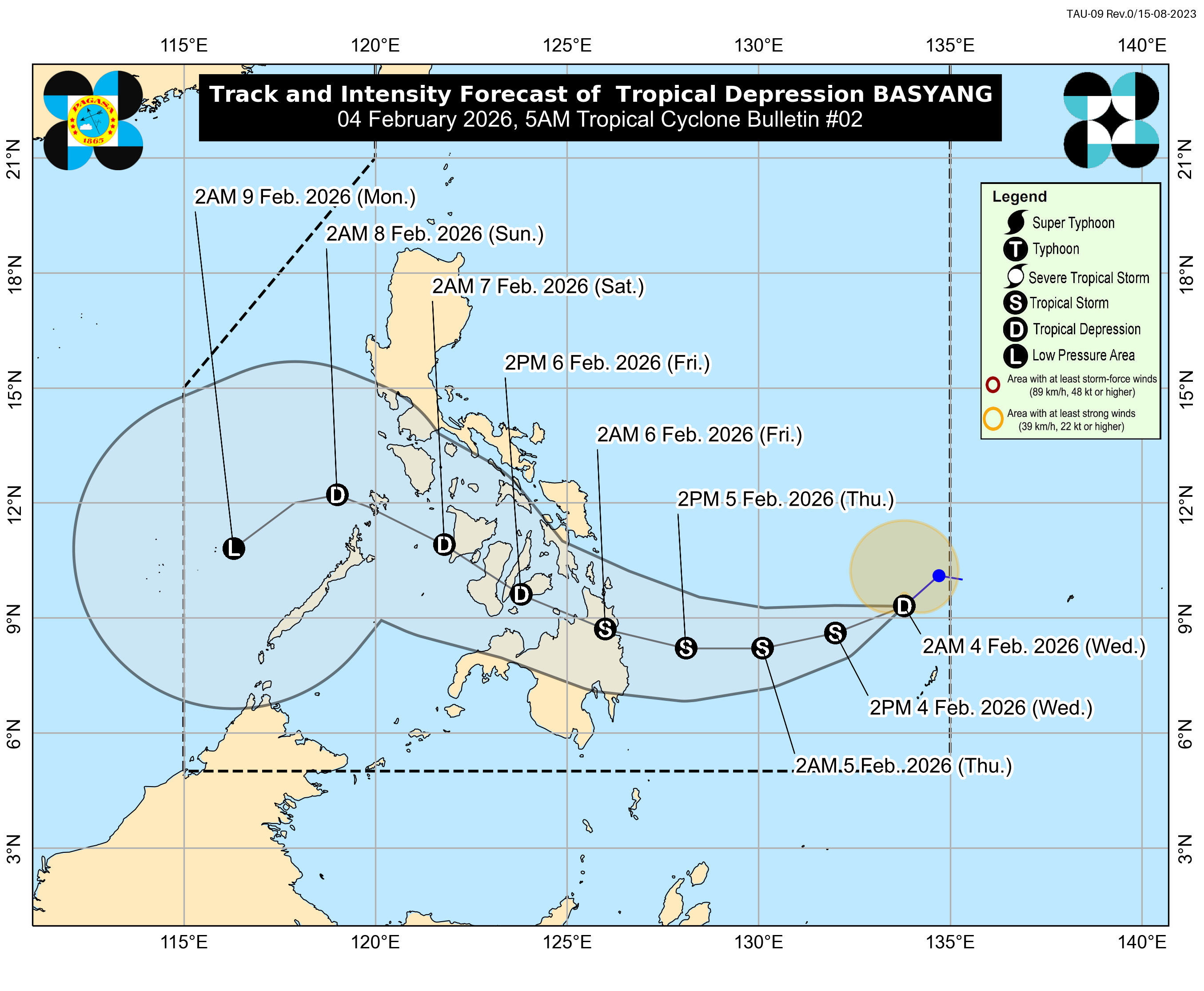 Basyang may make landfall over central Caraga or southern Eastern Visayas by Thursday evening or early Friday before traversing portions of Mindanao and the Visayas.